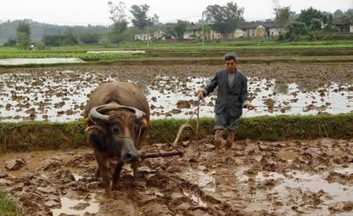 農(nóng)歷三月,草木發(fā)芽,春耕生產(chǎn)開始了。搶水整田是莊稼人一春的要?jiǎng)?wù),把犁耙搬出去,把牛趕出去,然后一聲吆喝,打破鄉(xiāng)村田野的寂靜。一春的辛苦勞作,便開始了。