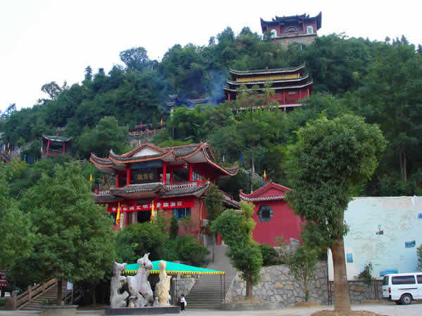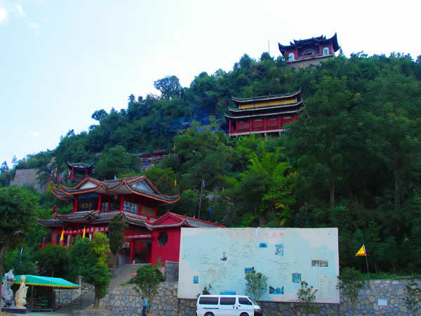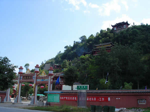 紫霞觀 紫霞觀始建于明朝嘉靖年間,近500年的歷史,在戰(zhàn)亂時期收到不同程度的破壞。紫霞觀是1992年因旅游事業(yè)的發(fā)展,教徒的信教,經(jīng)政府的批準(zhǔn),由各地的善男信女共同捐資,當(dāng)?shù)卣畵芸顢U建起來的。道觀共有大小殿廟30余座,計5殿、3宮、2亭、2廟、1閣、八仙山、仙人足跡石、中華同心鎖等景點。中國著名書法家沈鵬先生為紫霞觀題寫了觀名,觀內(nèi)有國內(nèi)外著名書法家的題詞、碑刻等宗教文物,以及老子教祖講經(jīng)說法渡化圖一百余幅。