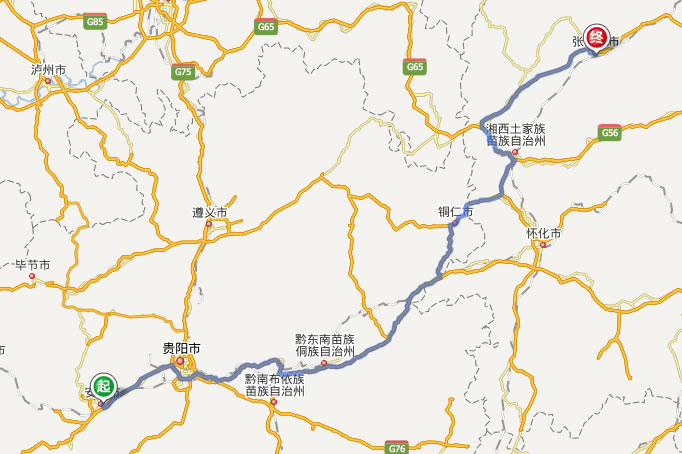 左右,沿途經過安順——貴陽——貴定縣——麻江縣——凱里市——臺江縣——劍河縣——玉屏侗族自治縣——銅仁——鳳凰古城——吉首市——花垣縣——保靖縣——張家界市。
