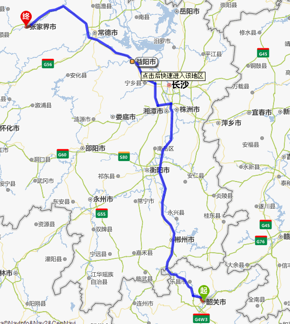 韶關去張家界自駕車自助游線路圖全程高速):