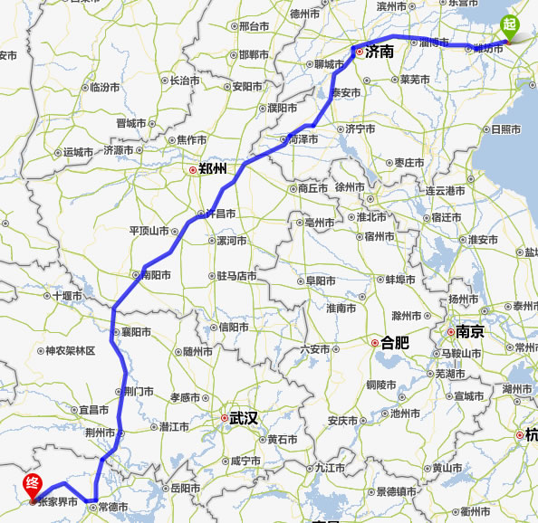平度去張家界自駕車(chē)自助游線路圖全程高速):