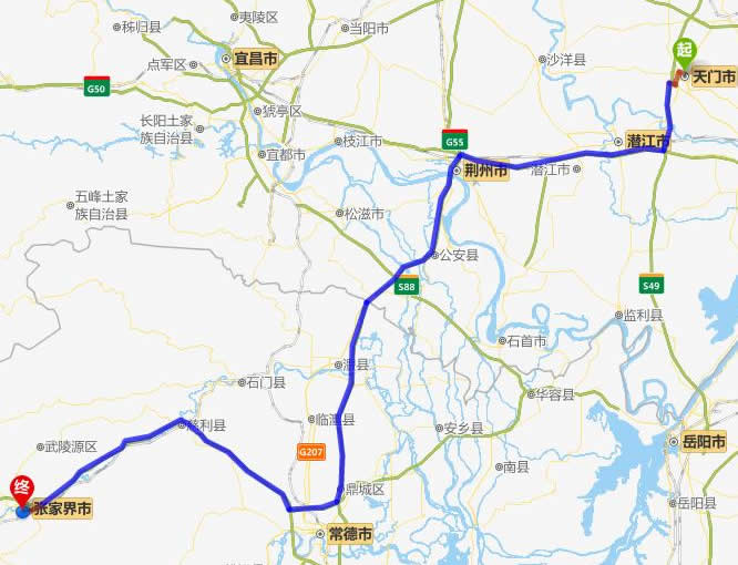 天門市去張家界自駕車自助游線路圖全程高速):