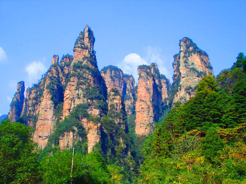 下 午:游覽中國(guó)第一個(gè)國(guó)家級(jí)森林公園——【張家界國(guó)家森林公園】,游覽大氧吧廣場(chǎng)(每立方厘米空氣中含8-10萬個(gè)負(fù)氧離子),登海拔1200米、張家界最大的凌空觀景臺(tái)——【黃石寨景區(qū)】(黃石寨可以乘索道上下,也可以徒步上下。如果選擇乘坐索道,單程65元/人、雙程118元/人自行購(gòu)買)。黃石寨山頂千山萬壑盡收眼底,沿著山頂環(huán)寨游道行走,可欣賞到許多絕美的自然風(fēng)光,沿途有六奇閣、摘星臺(tái)、雙門迎賓、五指峰、霧海金龜、天然壁畫、黃石松、回音壁、九重壁等景點(diǎn);結(jié)束行程送團(tuán)。